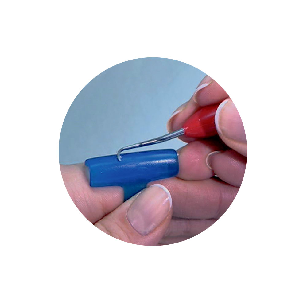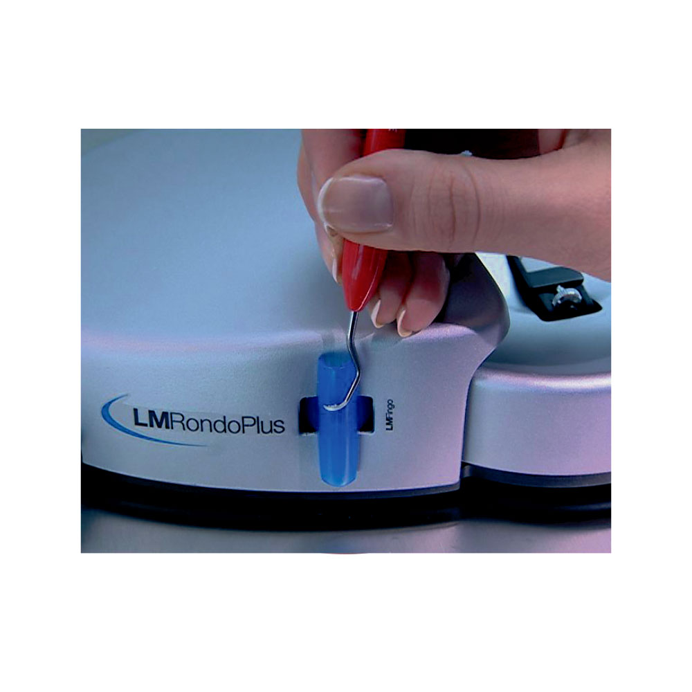 Test-sticks i akryl til testning af skarpheden på håndinstrumenter, tilbehør til LM Rondo slibemaskine, kan monteres på siden af maskinen, eller sættes på fingeren. Anvendes ved at føre instrumentet med et let træk i arbejdspositionen hen langs test- sticken, hvis instrumentet er skarpt nok, vil det "bide" i sticken.