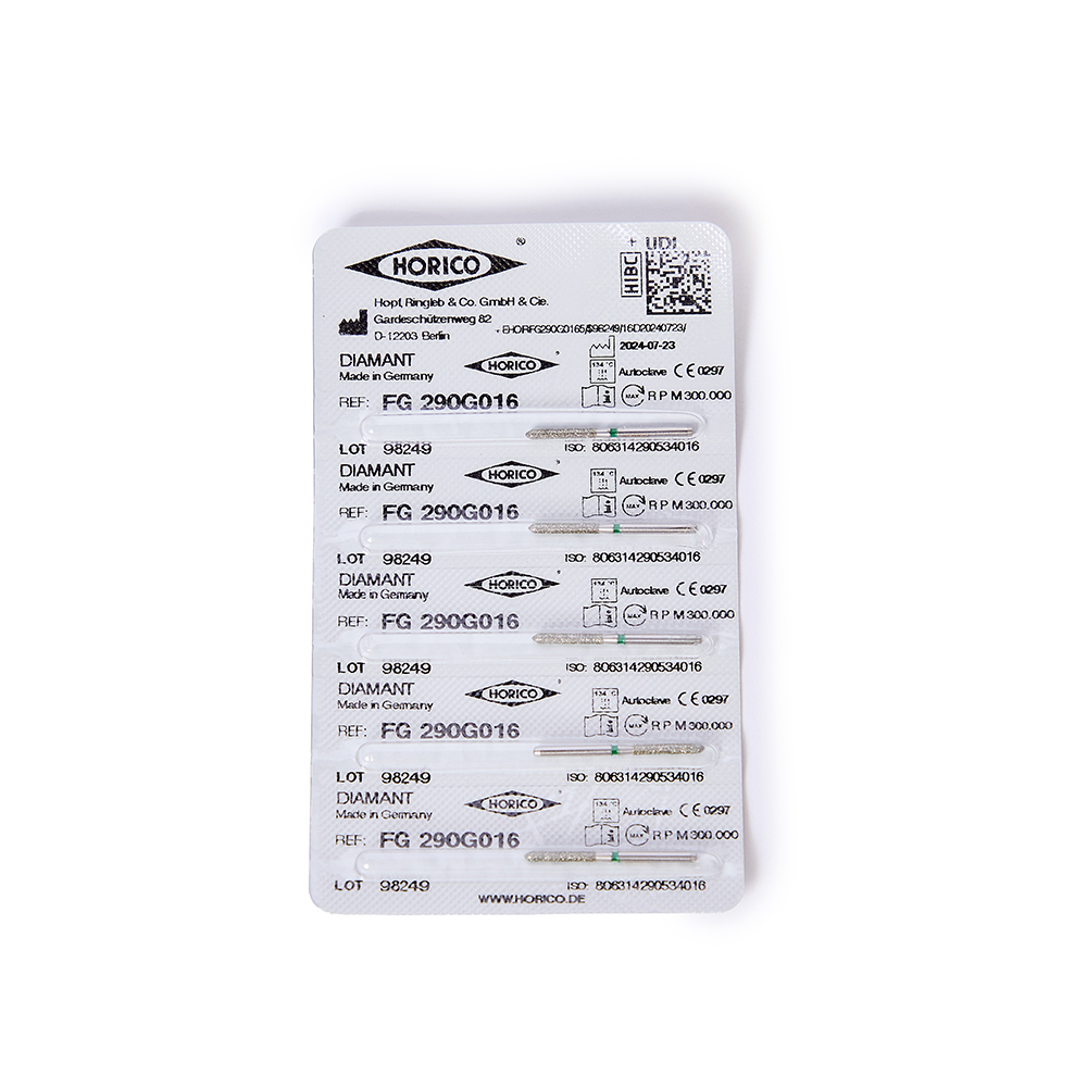 Diamantbor til præparation, til FG, cylinderformet med tilspidset tip, grov med grøn ring, hovedlængde 10 mm, G290/016.
