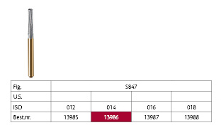 Hårdmetalbor med guldskaft og længere hoved, til FG, konisk med flad top, 8 mm arbejdende del, S847-314-014-8, 237031AA.