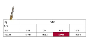 Hårdmetalbor med guldskaft og længere hoved, til FG, konisk med afrundet top, 8 mm arbejdende del, S856-314-016-8, 237026AA.