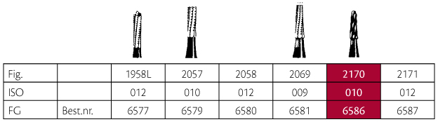 Skrubfræsere i hårdmetal, guldfarvede, til FG, konisk med afrundet top, 2170/010, hovedhøjde 3,7 mm.
