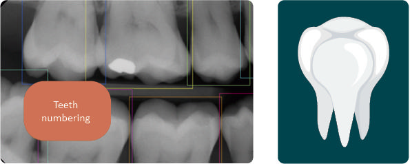 - Automatisk markering af caries, opdelt i sværhedsgrader.