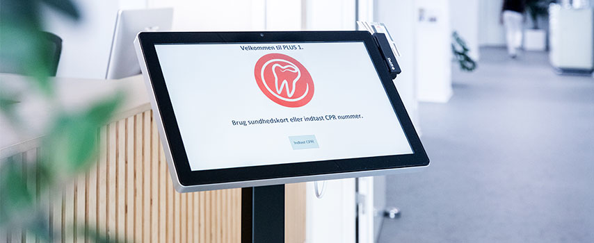 Velkomst terminalen er udviklet til at lette registreringen ved patientens ankomst. Det betyder ikke, at man mister den personlige kontakt til patienterne men blot, at det er patienten selv, der klare registreringen samt opdaterer sine personlige oplysninger.