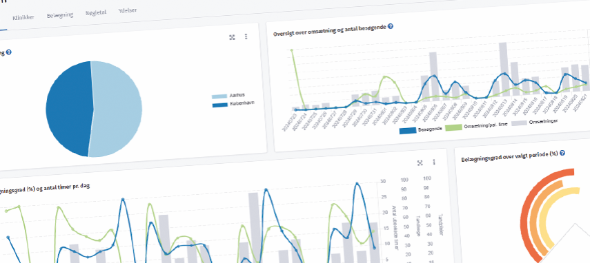- Dynamisk overblik over klinikkens KPI'er gør det muligt at optimere forretningen og udnytte klinikkens kapacitet.