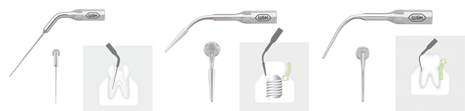 W&H ultralydsspidser er udviklet i tæt samarbejde med brugerne og er specielt designet til piezo teknologien. Sortimentet af spidser dækker hele klinikkens behov inden for profylakse og parodontologi, endodontologi, implantologi samt protetik og præparation.
