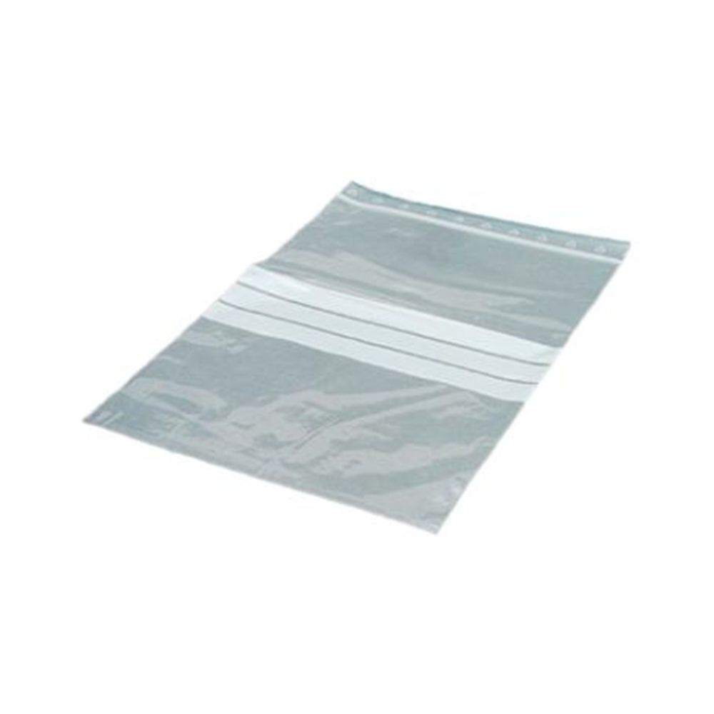 Plastposer m/lynlås, 170 x 230 mm, med skrivefelt, I LDPE plast (polyethylen med lav denstitet) som er blød og fleksibel. Tykkelse 50 my.