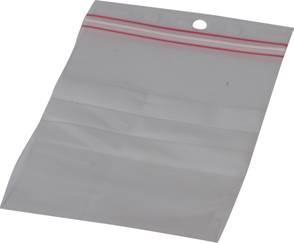 Plastposer m/lynlås, 80 x 120 mm, med skrivefelt.