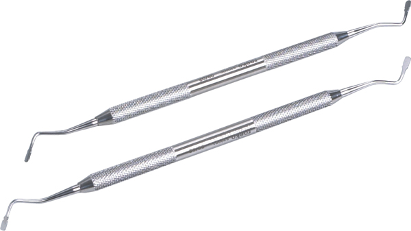 Pochepakningsinstrument, dobbeltendet, gracil, i rustfrit stål med BG og riflet kant.