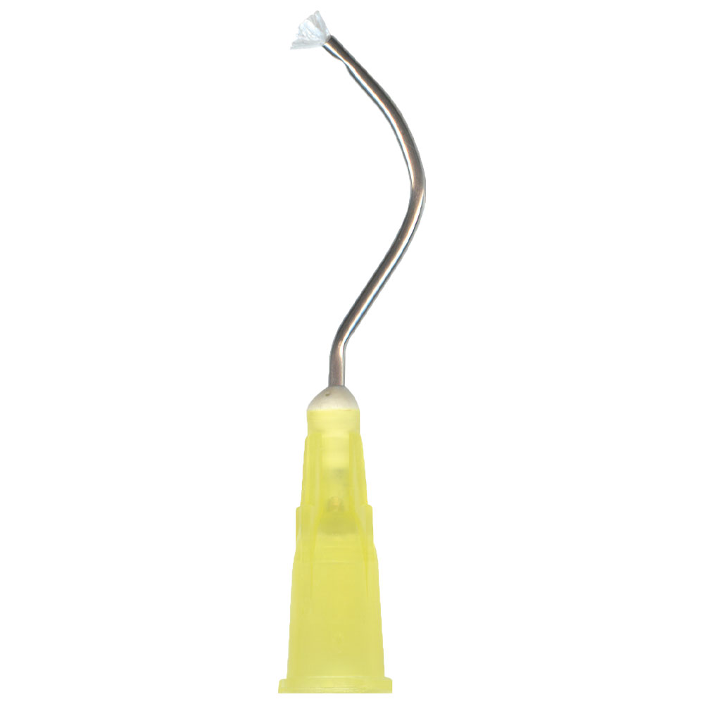 Bøjet appliceringskanyle med hvide børstehår af bomuld, velegnet til brug sammen med midlerne til hæmostase som fx Quick-Stat FS og Quick-Stat Free, gul, 19G, 1,1 mm.