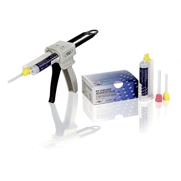VPES silikone til kontrol af pasform af fx kroner, broer og proteser, en kombination af A-silikone og polyether, mere hydrofil end A-silikoner, i automix magasiner, blå, arbejdstid 1 min, afbindingstid i munden 1 min.