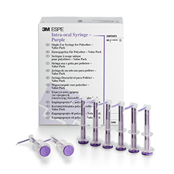 Kombineret blandespids og appliceringssprøjte til polyætermateriale fx Impregum. Materialet fyldes direkte ned i spidsen der påsættes et stempel. Ved brug (op til 12 timer senere), foldes spidsen ud og materialet blandes og appliceres direkte uden brug af magasin og aftrykssprøjte, lilla.