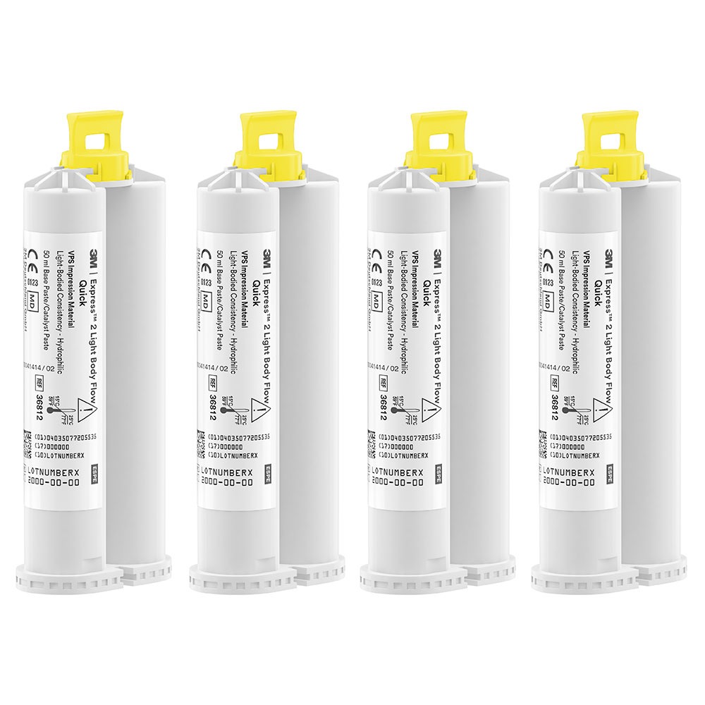 A-silikone i 50 ml magasiner, Light Body Flow Quick, blå, refill, arbejdstid 1 min. 30 sek., afbindingstid i munden 2 min. 30 sek.