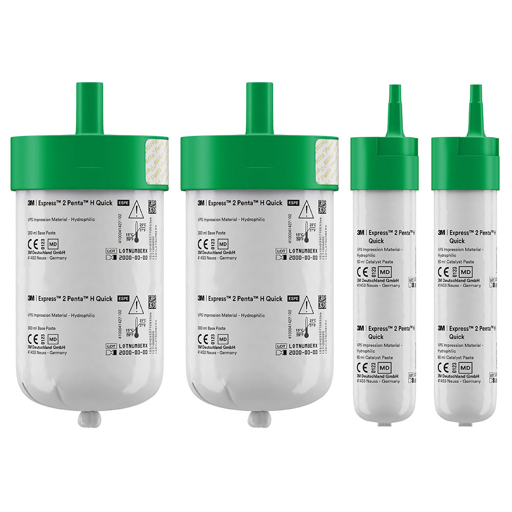 A-silikone i folieposer til blanding i el-blandemaskine, Quick, grøn, refill, arbejdstid 1 min. 15 sek., afbindingstid i munden 2 min. 30 sek.