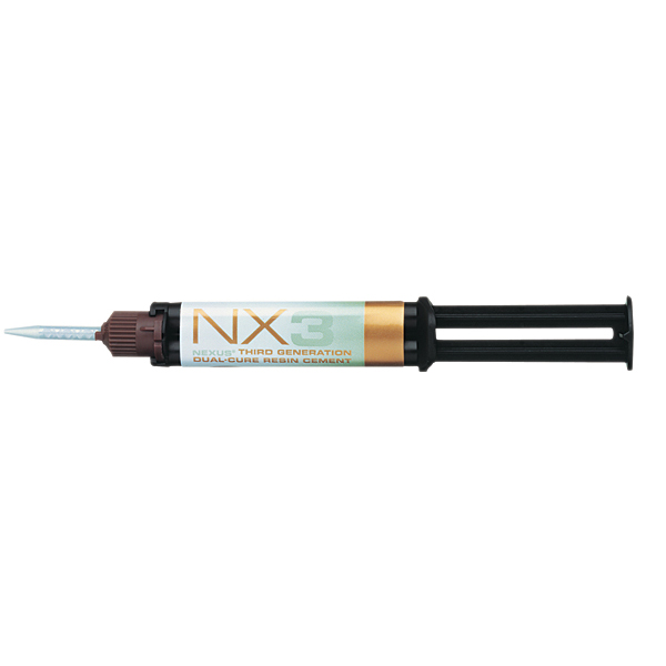 Tredje generations Nexus, dualhærdende plastcement, til cementering af porcelæns- og kompositrestaureringer, i automix-sprøjte, White.