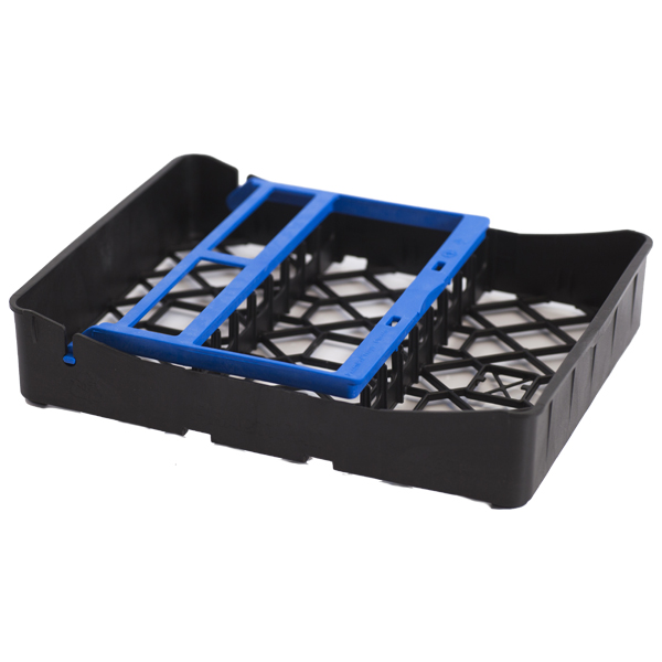 Til Practipal bakkesystem, bakke i ½ størrelse med plads til 9 instrumenter, med bøjle, der holder instrumenterne fast, lyseblå. Autoklavepose varenr. 13458 passer til en ½bakke, autoklavepose nr. 28219, passer til to ½bakker. Clips til samling af bakkerne kan bestilles på varenr. 627.
