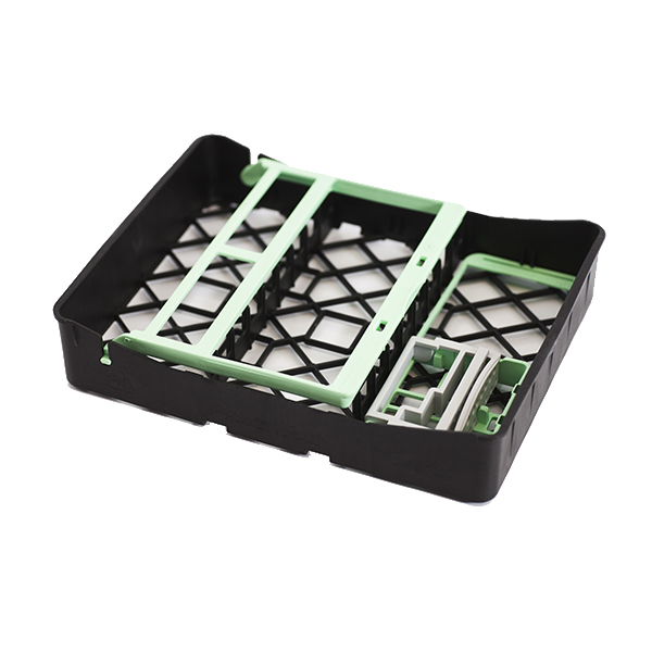 Til Practipal bakkesystem, bakke i ½ størrelse med plads til 9 instrumenter, grå, med bøjle, der holder instrumenterne fast, mintgrøn, samt borholder med adapter, med plads til 2 forlængede bor, 5 HP/RA bor og 8 FG bor, mintgrøn.