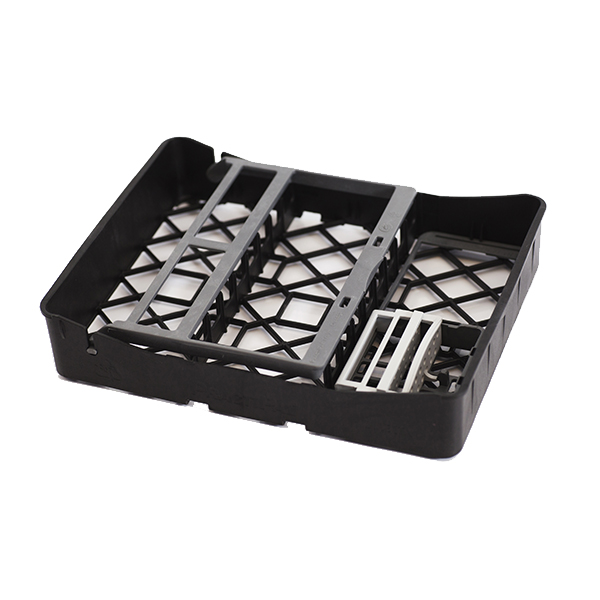 Til Practipal bakkesystem, bakke i ½ str. med plads til 9 instr., grå, med bøjle, der holder instrumenterne fast, grå, samt filholder med adapter, med rodmål og plads til 13 file, grå.