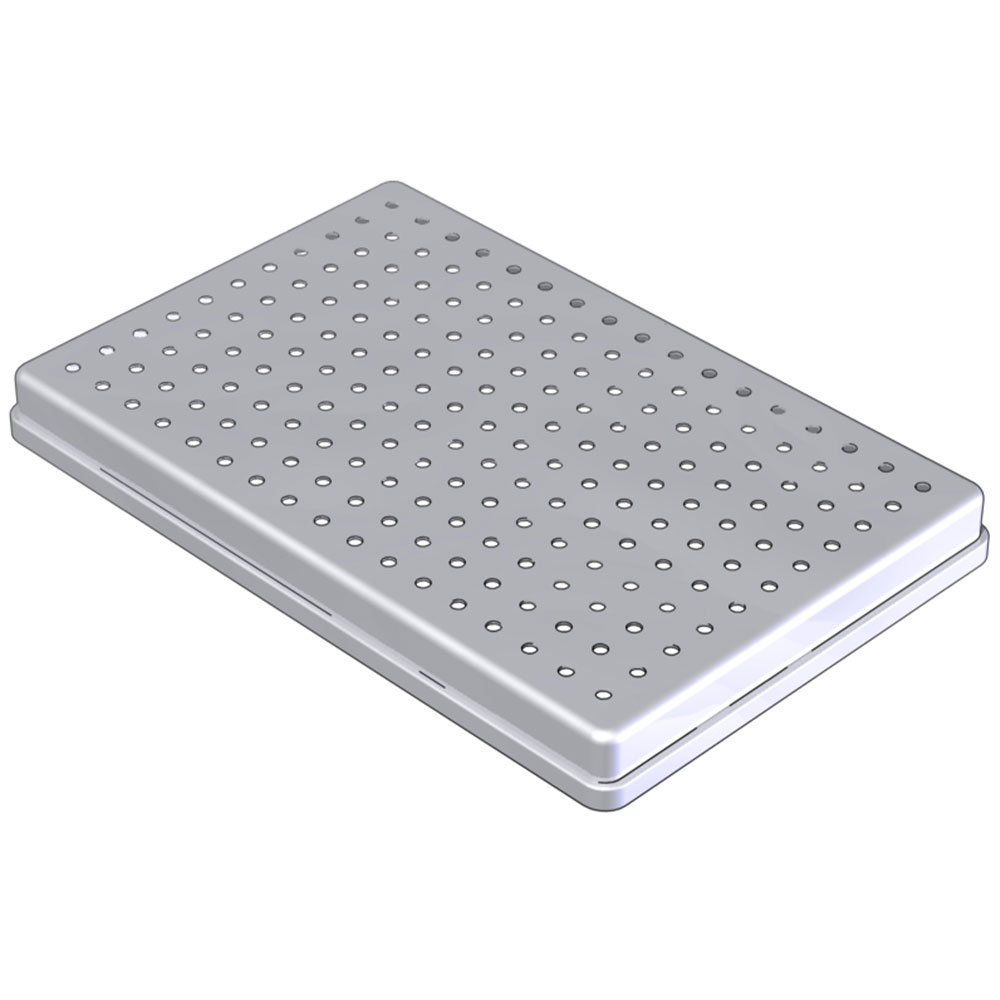 Låg til standardbakke, rustfrit stål, perforeret, standard str. 28 x 18 x 2,5 cm.
