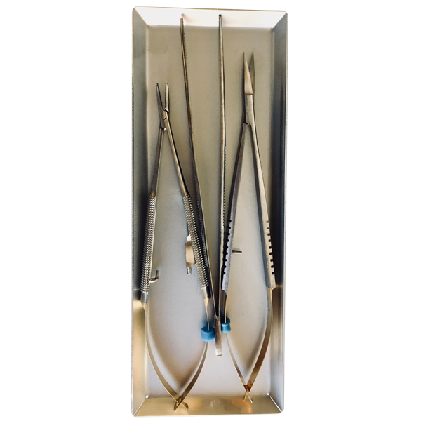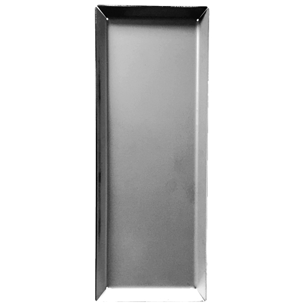 Posebakke i rustfri stål, str. medium. Indre mål: 165 x 55 mm (angiver maks. længde pr. instrument) til ca. 5 løse instrumenter. Ydre mål: 178 x 67 x 8 mm.