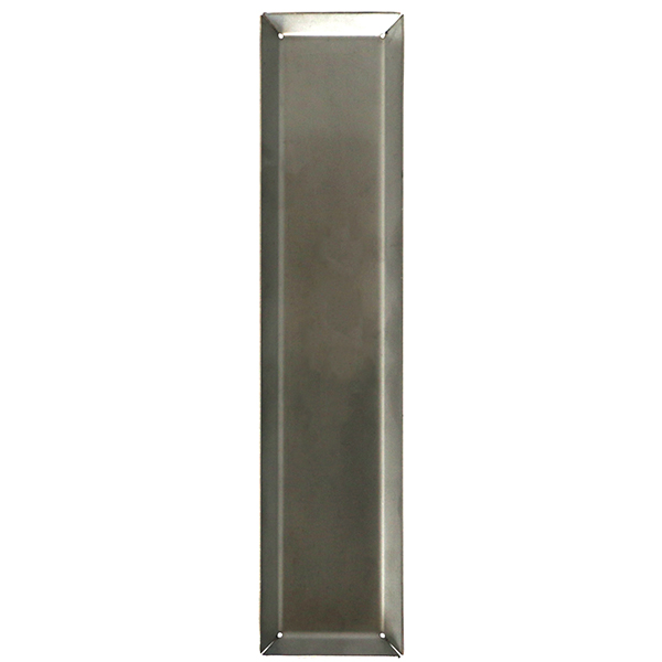 Posebakke i rustfri stål, str. mini. Indre mål: 165 x 30 mm (angiver maks. længde pr. instrument) til ca. løse instrumenter. Ydre mål: 40 x 180 x 8 mm.