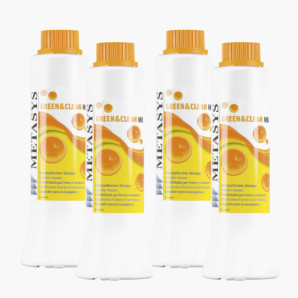 Rengøringsvæske til spytfontænen, på citronsyre- og enzymbasis, til grundig rengøring af spytfontænen, opløser kalk- og farveaflejringer, enzymerne udløser protein, kan bruges i dispenserflaske med børste, startsæt varenr. 66036.
