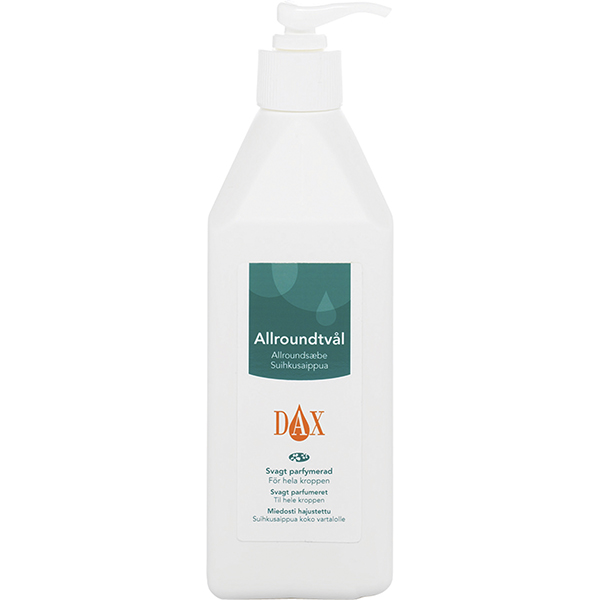 Allroundsæbe til hele kroppen, svagt parfumeret, med pumpe.