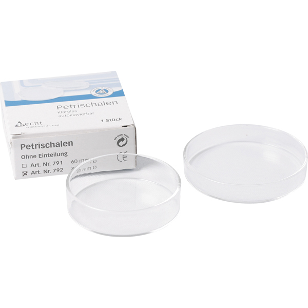 Petriskål i glas uden inddeling, 80 x 23 mm.