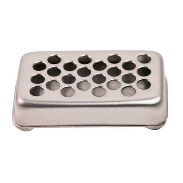 Vatpelletsæske med huller i rustfrit stål, 48 x 25 x 10 mm.