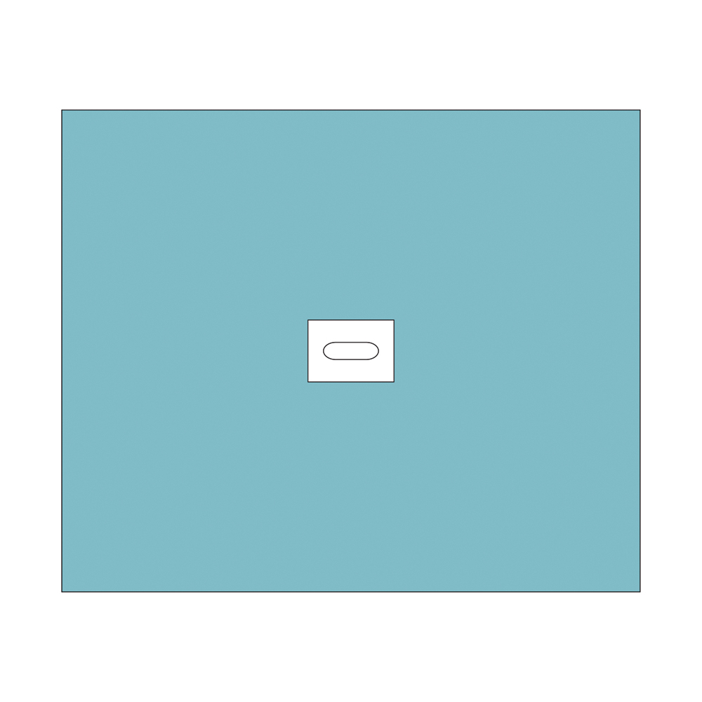 Sterilt hulstykke med klæb til afdækning, 150 x 180 cm, hulstørrelse ovalt 5 x 15cm. Ref. 708850.