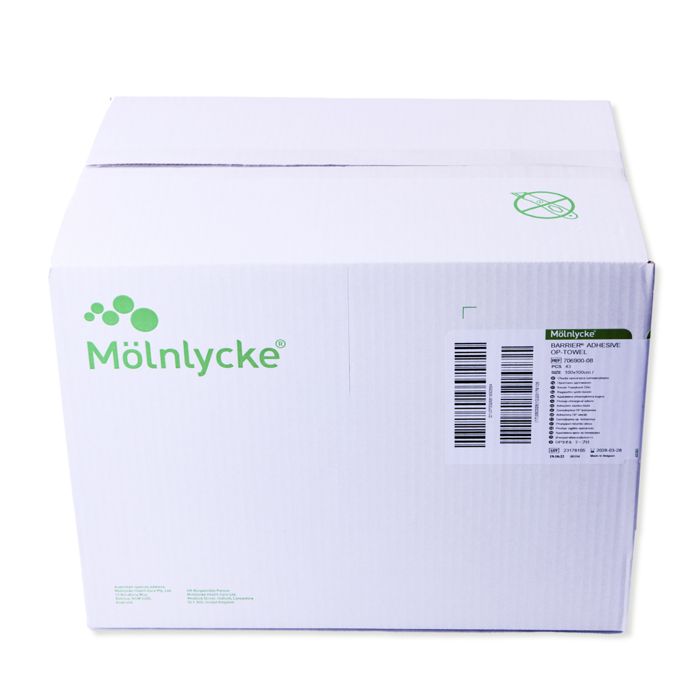 Barrier, sterile afdækningsstykker med klæbekant, 100 x 100 cm. OBS er kun beregnet til at klæbe på huden, da det klæber for meget, hvis det klæbes på udstyr, dvs. at limen sætter sig fast.