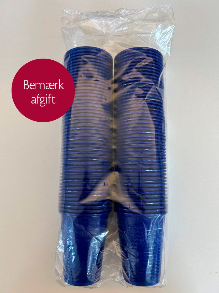 Drikkebægre i plast, blå, 180 ml. BEMÆRK: Afgift ifm. med ny finanslov 2020!