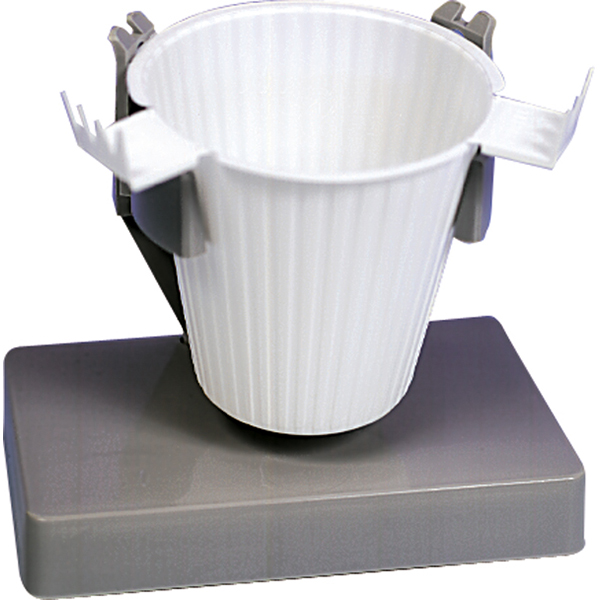 Affaldskopper i hvid plast med afstrygningsgafler.