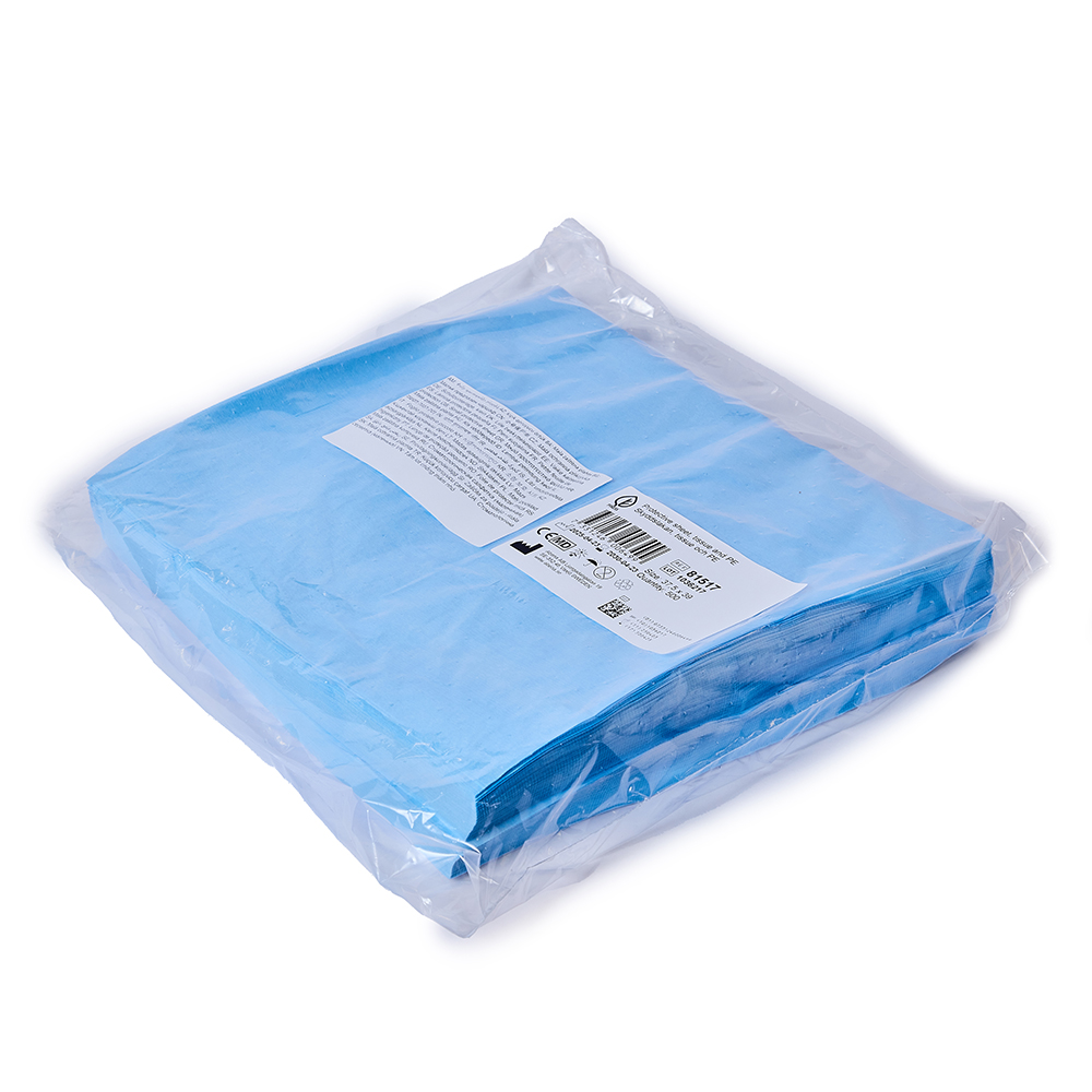 Patientservietter med plastbelægning på bagsiden, lyseblå, 37,5 x 39 cm, tynd kvalitet. Er ikke foldet i kassen.