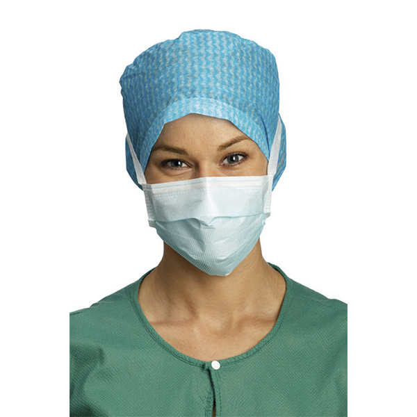 Mundbind, Barrier Antifog, med speciel plastbelægning som hindrer, at brillerne dugger, blødt bakterietæt, blåt papir med filter af ren polypropylen, næseklemme og 4 bændler, type II.