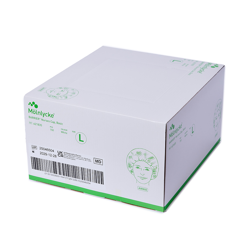 Mølnlycke huer Annie hvid str. L, 150 stk.