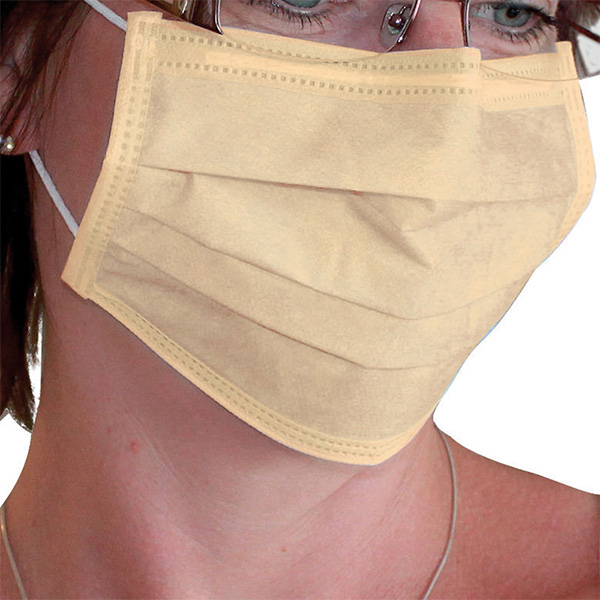 Mundbind, blødt bakterietæt, gult papir med næseklemme og stofelastik, 3-lags. Indeholder IKKE latex, ftalater eller formaldehyd. Type II
