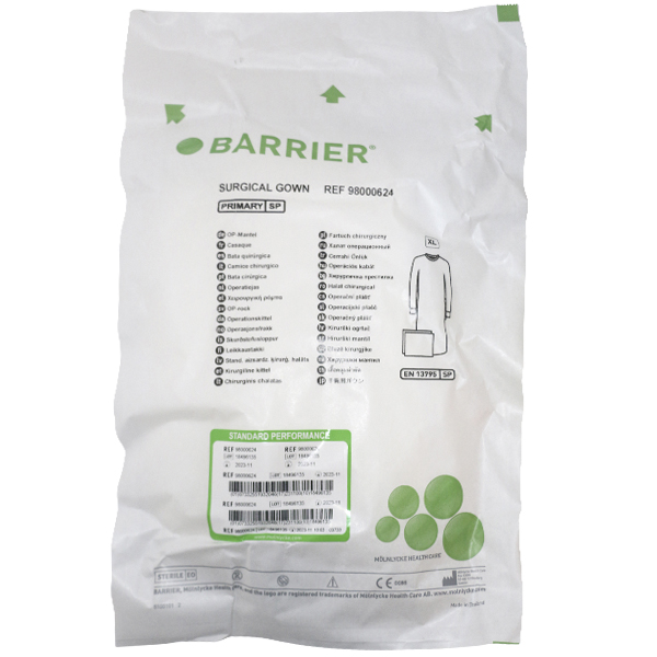 Barrier OP-kittel Primary str. XL m/2 håndkl, stk
