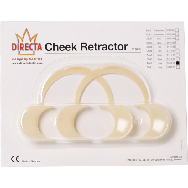 Dobbeltendet kindholder, der selv holder læber og kind til side, reflekterer ikke lyset, kan autoklaveres.