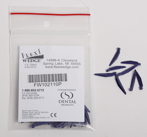 Kiler af kunststof, designet til patientens interproximale rum, ekspanderer ind i konkaviteter, orienterer trykkraften imod matricen, kan stables så de udfylder interproximale rum i højden, farvekodet, lilla, large.