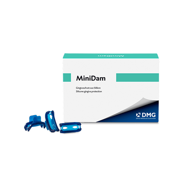 Kofferdam i mini-udgave med hul til 2 tænder, giver lokal beskyttelse af den proksimale region, bliver på plads uden brug af klammer, latexfri, blå.