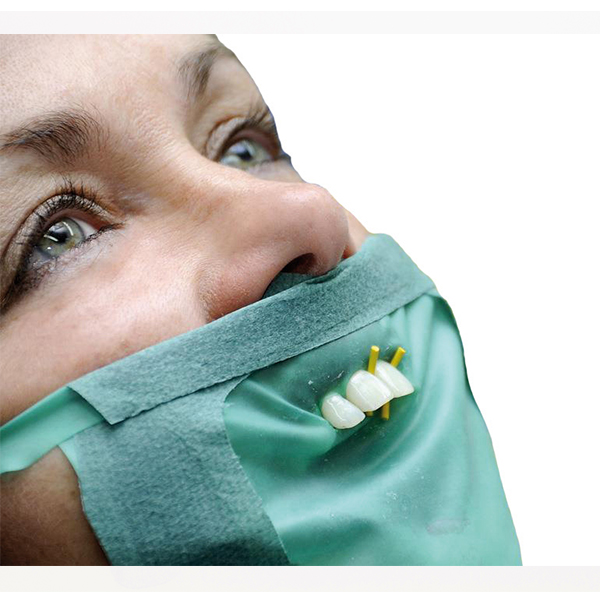 Kofferdam med papramme, elastikker og papirdække, medium.