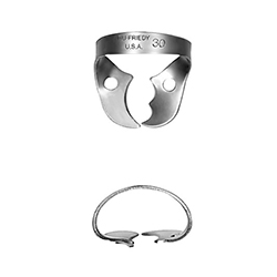 Kofferdamklamme med vinger, Satin Steel, Alloy (blank), RDCM0 0, med flade kæber og høj bue til små incisiver og de første præmolarer i UK.