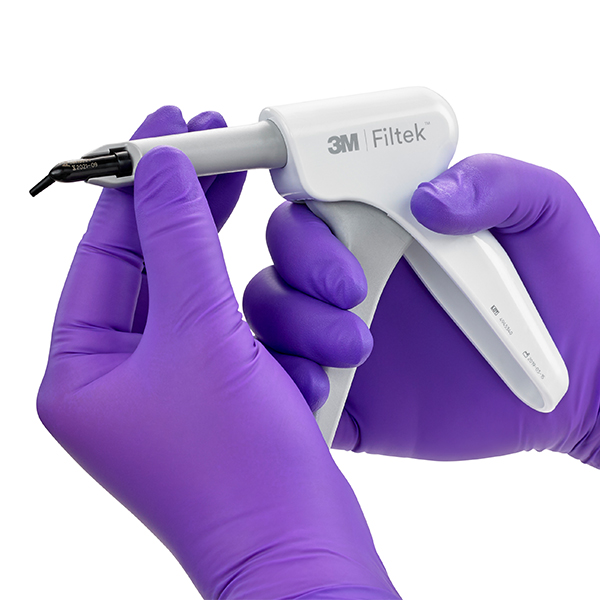 Komposit pistol til komposit i kapsler, med roter-bart "rør" så man ikke behøver at dreje kapslen, hvilket gør det let at applicere materialet i den rigtige retning.
