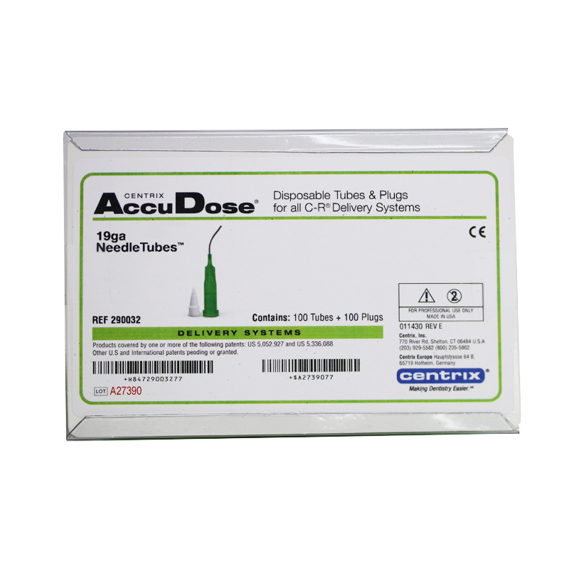Kanylespidser med metalkanyle, AccuDose Needle Tubes, 19 gauze, grøn, til applicering af tyndtflydende materialer, passer i komposit pistoler.