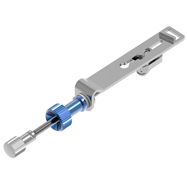 Matriceholder med "EasyGlide" funktion: gevindet glider let pga. de indbyggede teflonskiver og skruerne er belagt med blå titaniumoxid for let genkendelse, med afrundede hjørner for bedre komfort for patienten, nr. 1, Nystrøm, til højre UK/venstre OK.