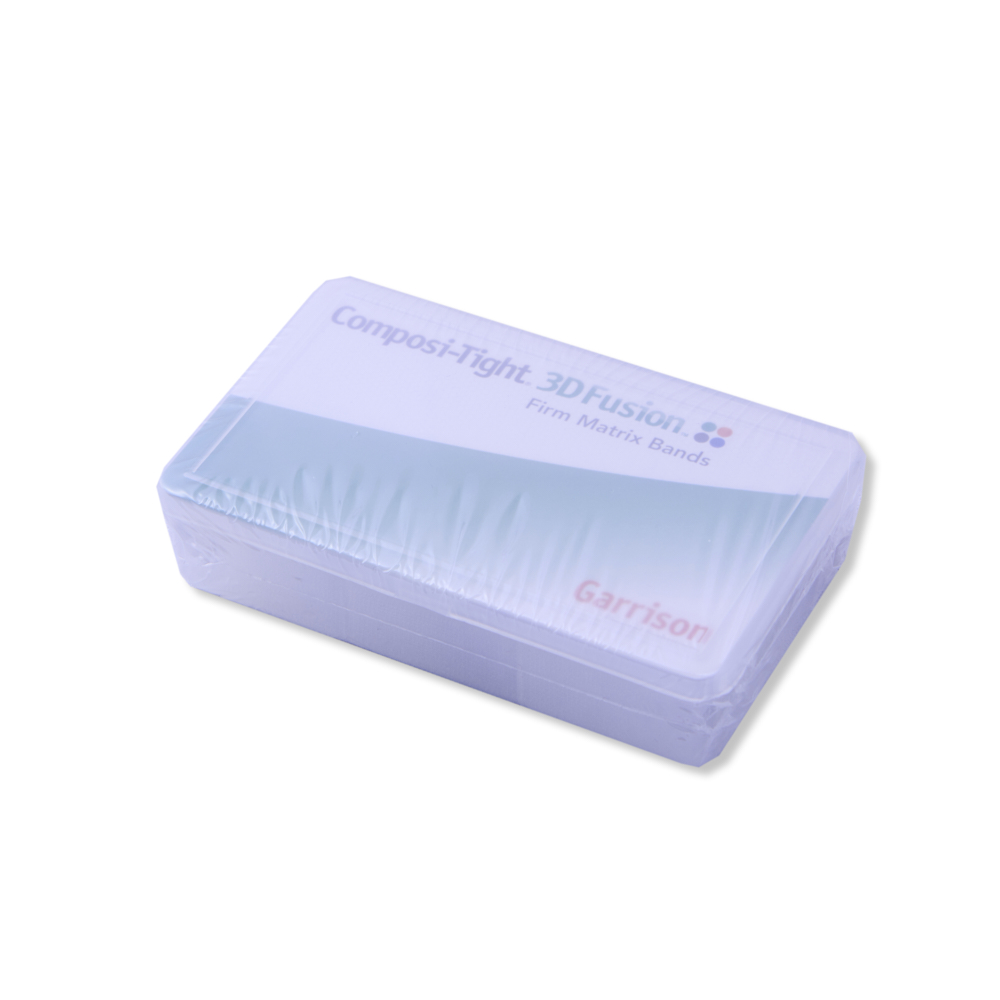 3D Fusion Firm matricer, forkonturerede matricer med eZ-Place teknologi, der gør at matricerne holder formen under placering, hvilket gør dem nemmere at placere, FXHB04, ass. med 75 stk. af hver størrelse: præmolar 4,3 mm, lille molar 5,3 mm, stor molar 6,1 mm samt molar med tunge 7,7 mm.