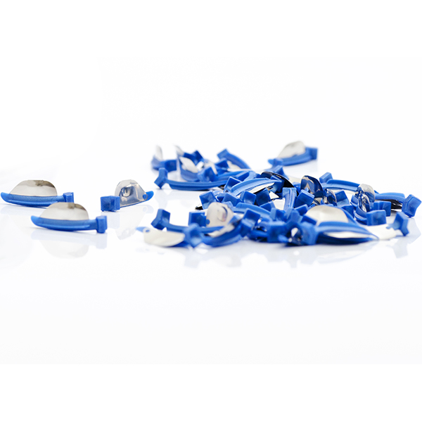 Kombination af kile og sektionsmatrice, appliceres som en almindelig kile, kilekonstruktion med fleksibel vinge, som kan tilpasse sig de fleste approksimalrum, højre regular (mørkeblå), refill.