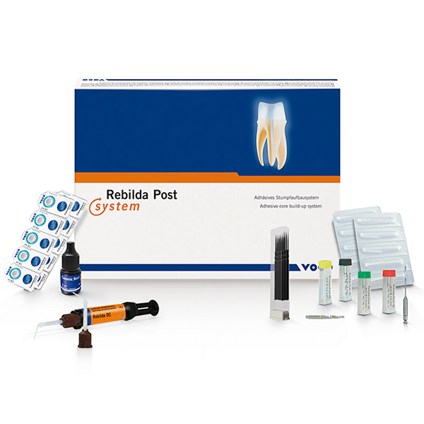 Sæt med 5 stifter og 1 bor i størrelserne 1,0, 1,2, 1,5 og 2,0 mm, 10 g Rebilda DC Dentin i QuickMix sprøjte, 5 ml Ceramic Bond, 20 x Futurabond DC Singledose, 1 stk Rebilda Post reamer 0,7 mm samt tilbehør.