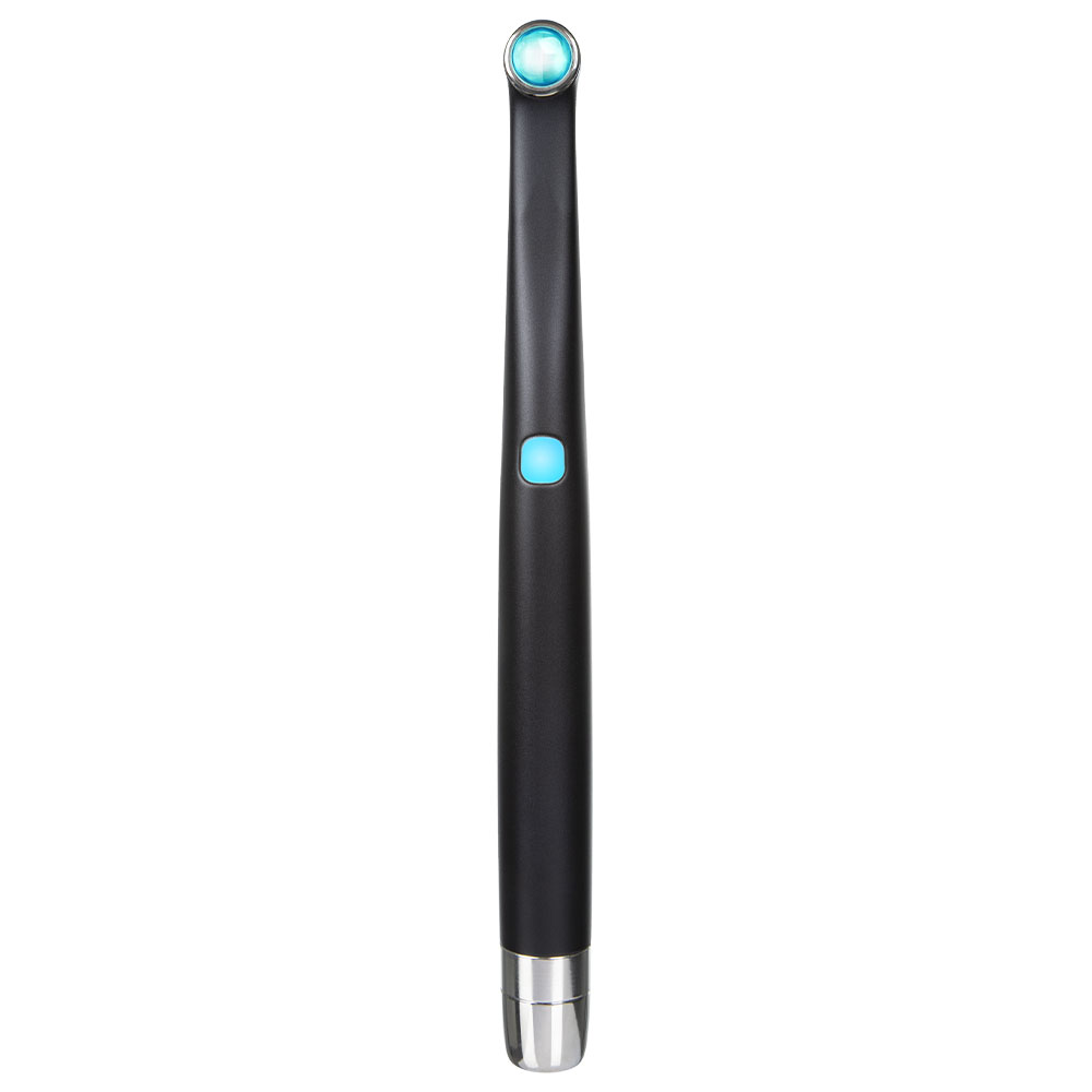 Ledningsfri LED-lampe i pennefacon, i sort og blank aluminium for ekstrem holdbarhed, med nyt design af staven, der giver optimal adgang i alle områder af munden, 12,5 mm linse med 12 LED dioder og kraftfuld brugerdefineret LED-chip, 2 strømtilstande (Standard Power 1350 mW/cm2 og Xtra Power 2200 mW/cm2), 2 hjælpeprogrammer (Black Light og White Light) samt mulighed for at arbejde ledningsfrit eller med ledning, forenklet aktivering med kun en knap, kan holde op til 120 gange uden genopladning, batteriet holder til op til 500 gange. Hærdespektrum på 380-515 nm, 5 års producentgaranti.