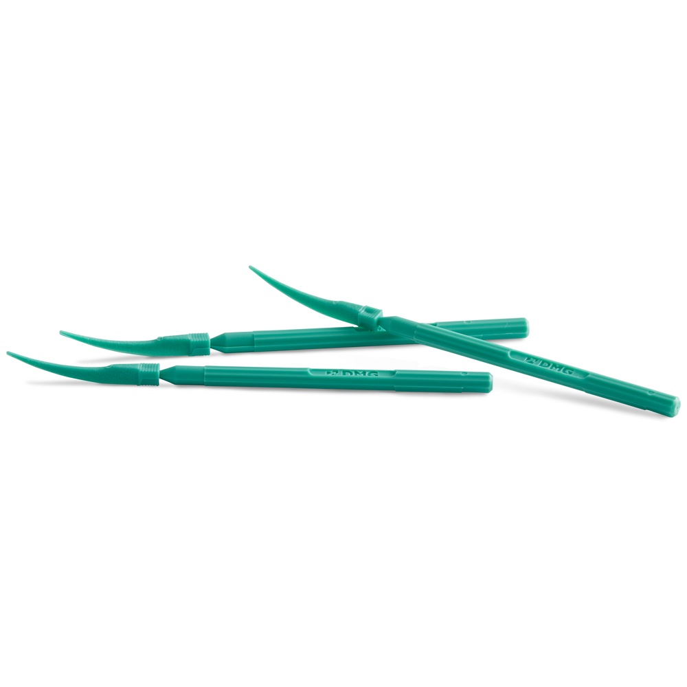 Plastkiler med aftageligt håndtag, der gør det let at placere kilen, grønne, beregnet til brug i forbindelse med behandlingssystemet Icon til behandling af facial og approksimal caries samt hvide pletter.